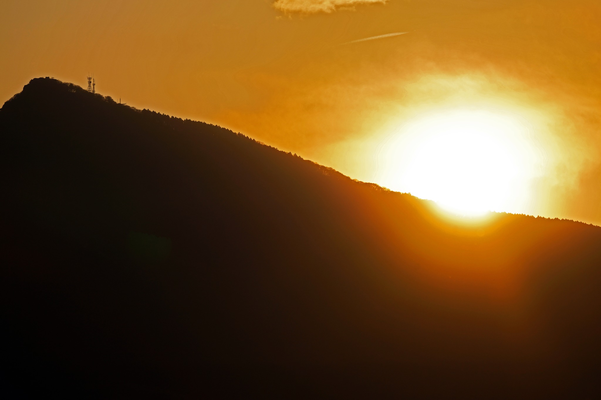 八郷から見る筑波山への落日です【300㎜望遠で)