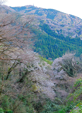 不動峠を上り、下りきる直前にある八郷一の山桜の大木で、